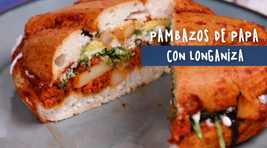 - Parte los panes por la mitad, “pinta” ambas partes en la salsa y rellena de papa con chorizo.